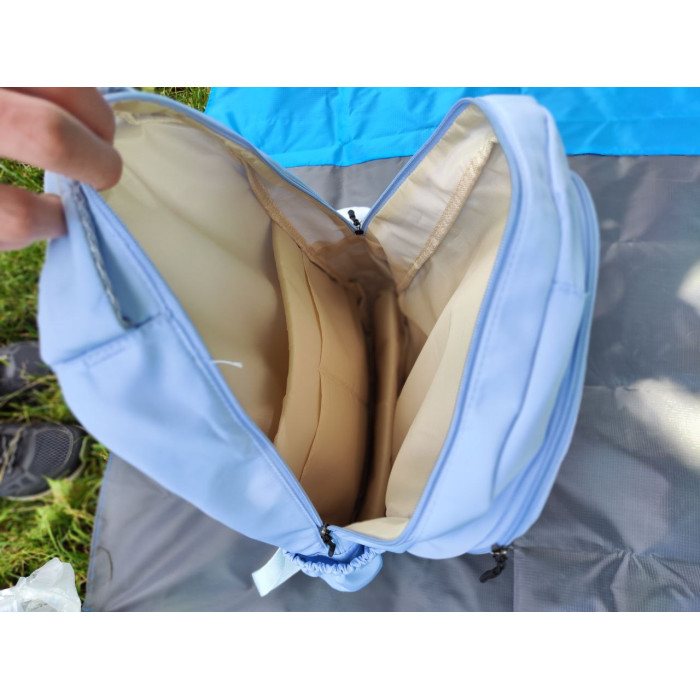- Бічні кишеньки: Чудово підійдуть для пляшки з водою, термоса чи парасольки.