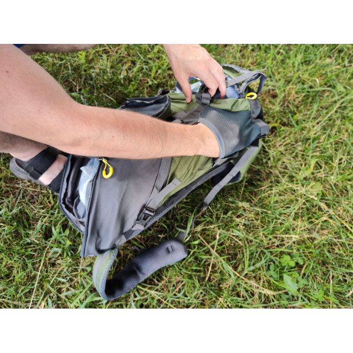 - Можливість кріплення додаткового спорядження: Численні додаткові ремені, петлі та кріплення дозволяють надійно зафіксувати зовні трекінгові палиці, каремат, намет чи інше об'ємне спорядження.
