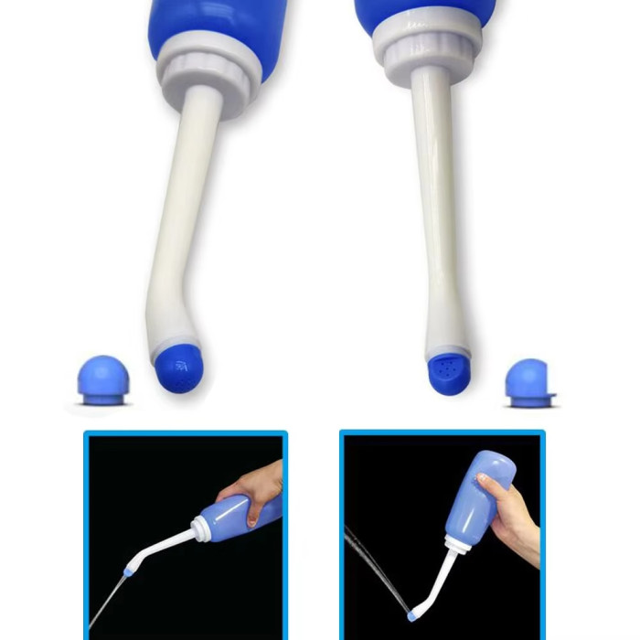 1. М'яка ергономічна пляшка: Об'ємом 500 мл забезпечує достатню кількість води для повноцінної процедури та ширшу зону очищення. Легко стискається для контролю потоку води.